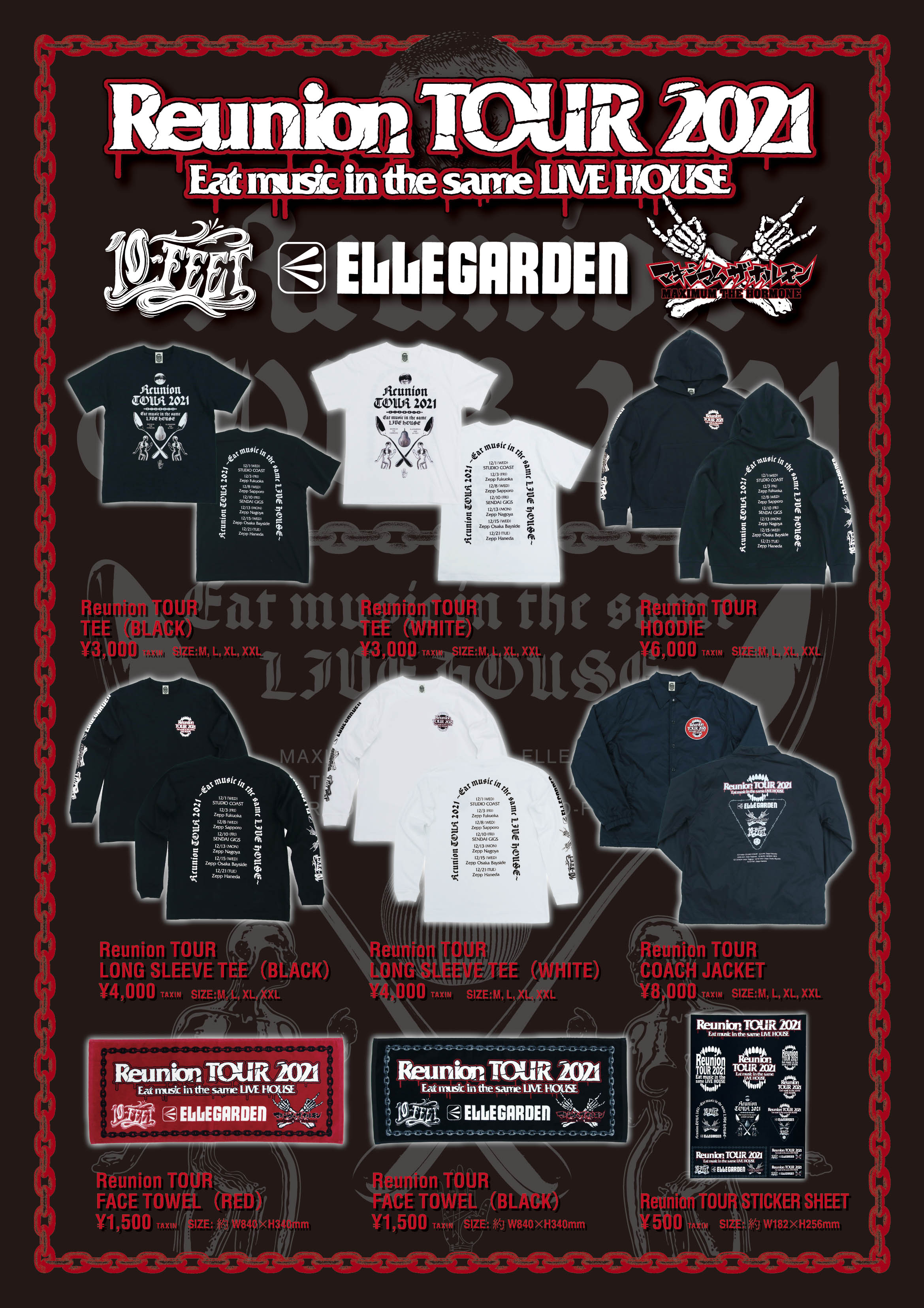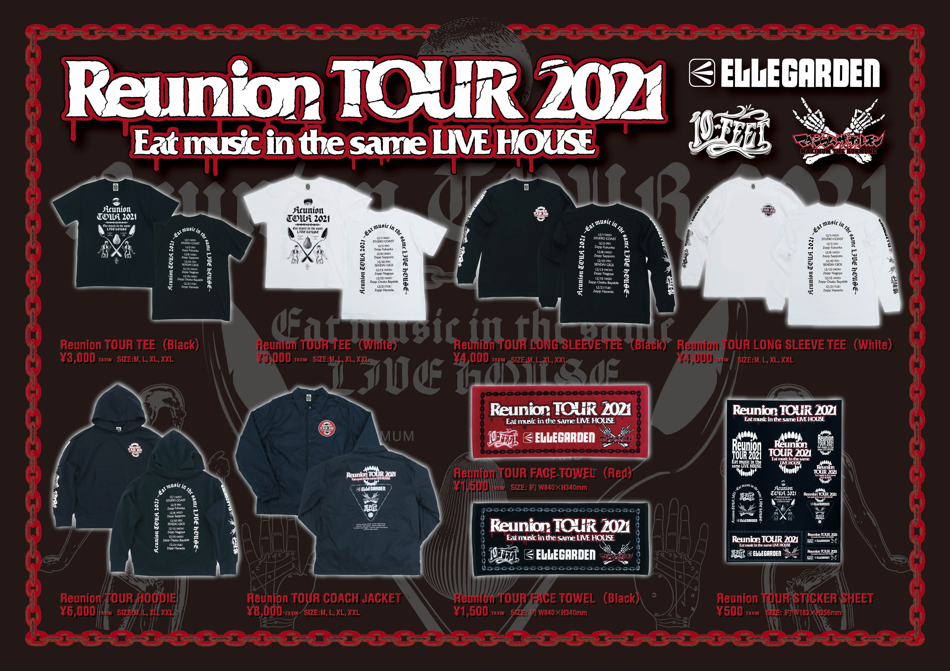 ELLEGARDEN、10-FEET、ホルモンの3マンツアー Reunion TOUR 2021 のツアーグッズの2次予約販売が、明日の正午より開始!