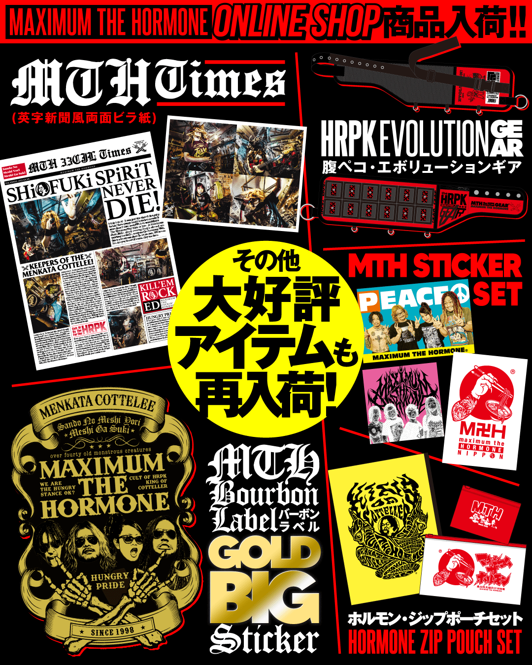 新春ホルモンワンマンライブ『メンカタコテリズン』のコンボボーナスアイテム「ホルモンお年玉袋」など、目玉商品が入荷です。