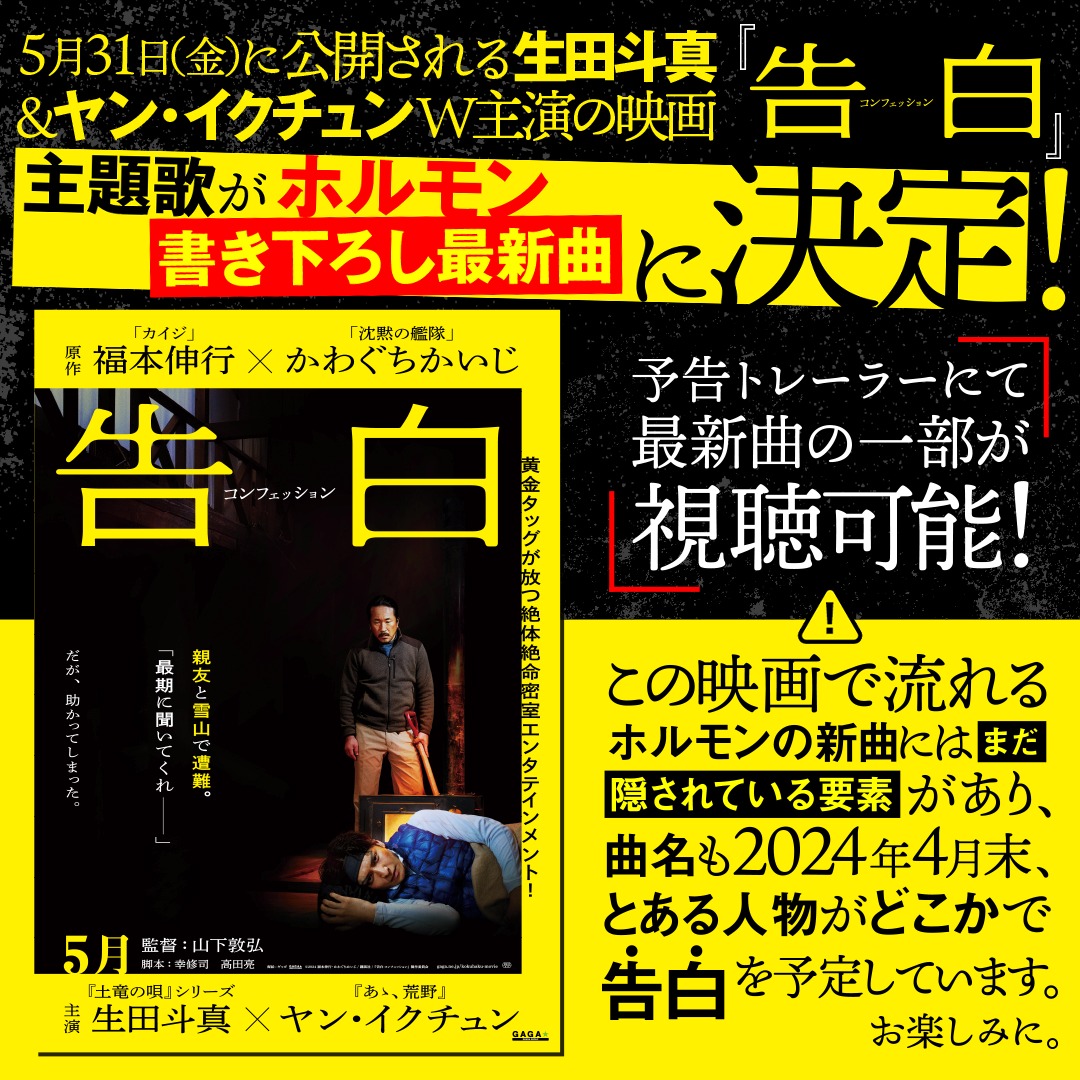 5月31日(金) 公開、映画『告白 コンフェッション』の主題歌がホルモン書き下ろし最新曲に決定!