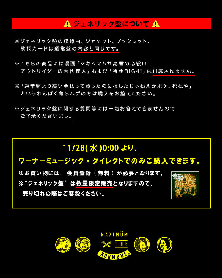 そして、11月25日(日) 21:00頃に新曲“maximum the hormone II”のMVを公開予定です!