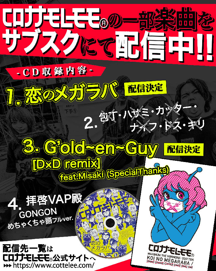また、マキシマム ザ ホルモンの2号店にあたるコロナナモレモモが、一部楽曲をサブスクにて配信中!