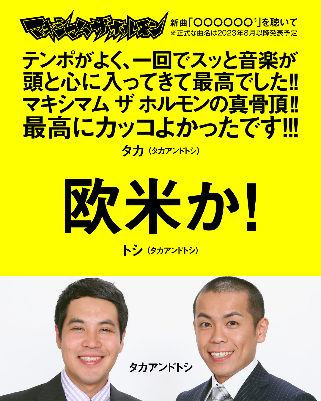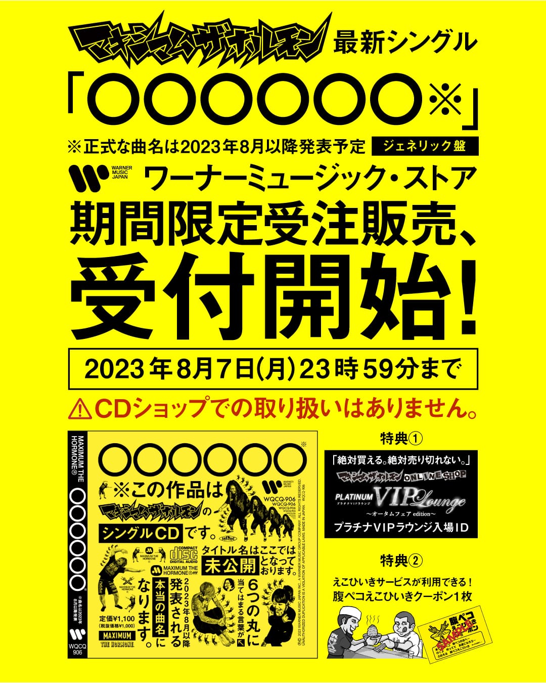 只今より、ホルモン5年ぶりのニューシングル『○○○○○○』ジェネリック盤が、